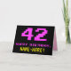 La parte delantera de este divertido, nerd y geeky diseño de tarjetas de felicitación con temática de cumpleaños incluye un gran número rosa "42", junto con el mensaje "FELIZ CUMPLEAÑOS", de color rosa, y un audaz nombre de destinatario editable amarillo. El texto presenta un aspecto inspirado en el de los videojuegos de 8 bits antiguos y gráficos de videojuegos de los años 70 y 80, y el fondo es negro de color. El interior presenta un mensaje de bienvenida de cumpleaños editable, o tal vez podría ser borrado y dejado en blanco si se va a escribir un mensaje a mano. Una tarjeta de cumpleaños de personalizable tonta como esta podría ser una manera divertida de reconocer el 42 cumpleaños de alguien. [~Z0000478]