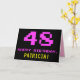 La parte delantera de este divertido, nerd y geeky diseño de tarjetas de felicitación de cumpleaños incluye un gran número "48" y el mensaje "FELIZ CUMPLEAÑOS", color rosa, junto con un audaz nombre de destinatario de personalizable amarillo. El texto tiene un aspecto inspirado en el de los clásicos videojuegos de 8 bits y gráficos de videojuegos de los años 70 y 80, y el fondo es de color negro. El interior presenta un mensaje personalizado de bienvenida de cumpleaños, o tal vez podría ser borrado y dejado en blanco si se va a escribir un mensaje a mano. Una tonta tarjeta personalizada de cumpleaños como esta podría ser una manera divertida de celebrar el cumpleaños cuarenta y ocho de alguien. [~Z0000478]
