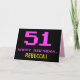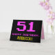 La parte delantera de este divertido, geeky y nerd diseño de tarjetas de felicitación de cumpleaños incluye un gran número rosa "51", junto con el mensaje "FELIZ CUMPLEAÑOS", en rosa, y un audaz nombre de destinatario editable amarillo. El texto tiene un aspecto inspirado en el de videojuegos de 8 bits vintage y gráficos de juegos de computadora de los años 70 y 80, y el fondo es negro de color. El interior presenta un mensaje de bienvenida de cumpleaños de personalizable, o tal vez podría ser borrado y dejado en blanco si se va a escribir un mensaje a mano. Una tonta tarjeta de cumpleaños personalizada como esta podría ser una manera divertida de celebrar el primer cumpleaños de alguien. [~Z0000478]