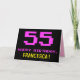 La parte delantera de este divertido, nerd y geeky diseño de tarjetas de felicitación de cumpleaños incluye un gran número rosa "55", junto con el mensaje "FELIZ CUMPLEAÑOS", en rosa, y un audaz nombre de destinatario editable amarillo. El texto presenta un aspecto inspirado en el de los videojuegos de 8 bits antiguos y los gráficos de juegos de ordenador de los años 70 y 80, y el fondo es negro de color. El interior tiene un mensaje de bienvenida de cumpleaños personalizado, o tal vez podría ser borrado y dejado en blanco si se va a escribir un mensaje a mano. Una tarjeta de cumpleaños de personalizable como esta podría ser una manera divertida de reconocer el 55 cumpleaños de alguien. [~Z0000478]