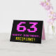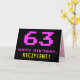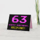 La parte delantera de este divertido, nerd y geeky diseño de tarjetas de felicitación con temática de cumpleaños incluye un gran número rosa "63", junto con el mensaje "FELIZ CUMPLEAÑOS", de color rosa, y un audaz nombre de destinatario personalizado amarillo. El texto presenta un aspecto inspirado en el de los clásicos gráficos de videojuegos/computadoras de 8 bits de los años 70 y 80, y el fondo es negro de color. El interior tiene un mensaje de bienvenida de cumpleaños de personalizable, o tal vez podría ser borrado y dejado en blanco si un mensaje se va a escribir a mano en su lugar. Una tonta tarjeta de cumpleaños de personalizable como esta podría ser una manera divertida de celebrar el 63 cumpleaños de alguien. [~Z0000478]