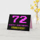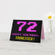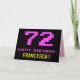 La parte delantera de este divertido, geeky y nerd diseño de tarjetas de felicitación de cumpleaños incluye un gran número "72" y el mensaje "FELIZ CUMPLEAÑOS", de color rosa, junto con un audaz nombre de destinatario de personalizable amarillo. El texto presenta un aspecto inspirado en el de los videojuegos de 8 bits antiguos y gráficos de videojuegos de los años 70 y 80, y el fondo es negro de color. El interior presenta un mensaje de bienvenida de cumpleaños de personalizable, o tal vez podría ser borrado y dejado en blanco si se va a escribir un mensaje a mano. Una tarjeta de cumpleaños de personalizable tonta como esta podría ser una manera divertida de enviar un mensaje celebrando el cumpleaños setenta segundos de alguien. [~Z0000478]