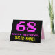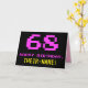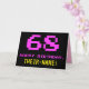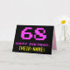 La parte delantera de este divertido, friolento y nerd diseño de tarjetas de felicitación con temática de cumpleaños incluye un gran número "68" y el mensaje "FELIZ CUMPLEAÑOS", color rosa, junto con un audaz nombre de destinatario editable amarillo. El texto tiene un aspecto inspirado en el de los gráficos de videojuegos/videojuegos de 8 bits antiguos de los años 70 y 80, y el fondo es de color negro. El interior presenta un mensaje personalizado de bienvenida de cumpleaños, o tal vez podría ser borrado y dejado en blanco si se va a escribir un mensaje a mano. Una tonta tarjeta de cumpleaños de personalizable como esta podría ser una manera divertida de reconocer el 68º cumpleaños de alguien. [~Z0000478]