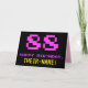 La parte delantera de este divertido, geeky y nerd diseño de tarjetas de felicitación de cumpleaños incluye un gran número "88" y el mensaje "FELIZ CUMPLEAÑOS", de color rosa, junto con un audaz nombre de destinatario de personalizado amarillo. El texto tiene un aspecto inspirado en el de los gráficos retro de videojuegos/computadoras de 8 bits de los años 70 y 80, y el fondo es negro de color. El interior tiene un mensaje personalizado de bienvenida de cumpleaños, o tal vez podría ser borrado y dejado en blanco si se va a escribir un mensaje a mano. Una tarjeta de cumpleaños de personalizable como esta podría ser una manera divertida de reconocer los ochenta y ocho años de alguien. [~Z0000478]