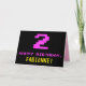 La parte delantera de este divertido, geeky y nerd diseño de tarjetas de felicitación con temática de cumpleaños incluye un gran número "2" y el mensaje "FELIZ CUMPLEAÑOS", de color rosa, junto con un audaz nombre de destinatario personalizado amarillo. El texto tiene un aspecto inspirado en el de videojuegos de 8 bits vintage y gráficos de juegos de computadora de los años 70 y 80, y el fondo es negro de color. El interior tiene un mensaje personalizado de bienvenida de cumpleaños, o tal vez podría ser borrado y dejado en blanco si se va a escribir un mensaje a mano. Una tarjeta de cumpleaños de personalizable como esta podría ser una manera divertida de enviar un mensaje para celebrar el segundo cumpleaños de alguien. [~Z0000478]