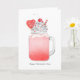 Ilustración de un batido extremo de San Valentín en un frasco de mason cubierto con crema batida, sprinkles, una galleta en forma de corazón y una cereza encima.