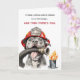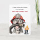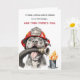 Tarjeta de cumpleaños divertida para bombero que presenta a un perro bombero humorístico sosteniendo una manguera. Perfecta para compañeros de trabajo, amigos o cualquier persona en el servicio de bomberos con un gran sentido del humor.