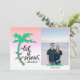 Envía buenos deseos esta temporada navideña con estas divertidas tarjetas de Navidad tropicales. Estas tarjetas dicen “que nieve… en otro lugar” con una palmera brillante y un gráfico de luces de cadena. Agrega tu propia foto y nombre.