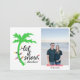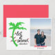 Envía buenos deseos esta temporada navideña con estas divertidas tarjetas de Navidad tropicales. Estas tarjetas dicen “deja que nieve… en otro lugar” con un brillante gráfico de palmera y luces. Agrega tu propia foto y nombre.