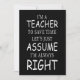 Tarjeta divertida de profesor de inglés que asume