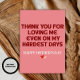 Celebra a tu mamá con una tarjeta divertida y sincera del Día de la Madre que nunca olvidará. Esta tarjeta imprimible es perfecta para expresar gratitud a tu mamá por amarte incluso en tus días más difíciles.
