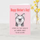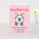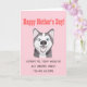 Tarjeta divertida del día de la madre con perro husky feliz.