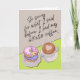 Divertida Disculpa Lo siento, tarjeta de felicitación de papel. Ilustracion digital con un plato de donut y una taza de café, capuchino con corazón. Arte, imagen y verso copyright © Shoaff Ballanger Studios, 2022.