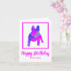 Silueta de perro de Bulldog francés con un loco tacto abstracto rosa caliente y azul brillante moderno. El divertido mensaje de cumpleaños dentro puede cambiarse a lo que quieras. Personaliza la tarjeta con el nombre en la parte delantera.