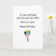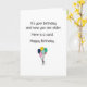 Una tarjeta de cumpleaños directa. Con un pequeño ramo de globos de colores, el texto negro arriba dice "Es tu cumpleaños y ahora eres mayor. Aquí tienes una tarjeta. Feliz Cumpleaños". Perfecta para aquellos que les gusta decir las cosas como son.