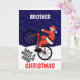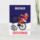 Tarjeta Divertido Feliz Navidad Santa en Bicicleta
