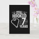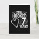 Este divertido diseño de aniversario de bodas de 7 años es perfecto para parejas de pescadores que han estado casadas durante 7 años y todavía están enganchadas la una a la otra y aman ir a pescar. ¡Genial para una fiesta de aniversario de bodas de 7 años para celebrar 7 años de matrimonio! Características "Todavía Enganchados Después de 7 Años" cita de aniversario de bodas con ganchos de pesca en forma de corazón con gráfico de pesca en un diseño de estilo vintage desgastado.