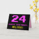 La parte delantera de este divertido, geeky y nerd diseño de tarjetas de felicitación con temática de cumpleaños incluye un gran número rosa "24", junto con el mensaje "FELIZ CUMPLEAÑOS", de color rosa, y un audaz nombre de destinatario personalizado amarillo. El texto tiene un aspecto inspirado en el de los clásicos videojuegos de 8 bits y gráficos de juegos de computadora de los años 70 y 80, y el fondo es negro de color. El interior tiene un mensaje de bienvenida de cumpleaños de personalizado, o tal vez podría ser borrado y dejado en blanco si un mensaje se va a escribir a mano en su lugar. Una tarjeta de cumpleaños de personalizable como esta podría ser una manera divertida de reconocer el 24 cumpleaños de alguien. [~Z0000478]