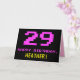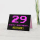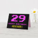 La parte delantera de este divertido, nerd y geeky diseño de tarjetas de felicitación de cumpleaños incluye un gran número rosa "29", junto con el mensaje "FELIZ CUMPLEAÑOS", en rosa, y un audaz nombre de destinatario editable amarillo. El texto presenta un aspecto inspirado en el de los gráficos vintage de videojuegos/videojuegos de 8 bits de los años 70 y 80, y el fondo es negro de color. El interior tiene un mensaje de bienvenida de cumpleaños personalizado, o tal vez podría ser borrado y dejado en blanco si se va a escribir un mensaje a mano. Una tonta tarjeta personalizada de cumpleaños como esta podría ser una manera divertida de celebrar el 29 cumpleaños de alguien. [~Z0000478]