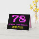 La parte delantera de este divertido, geeky y nerd diseño de tarjetas de felicitación de cumpleaños incluye un gran número rosa "78", junto con el mensaje "FELIZ CUMPLEAÑOS", en rosa, y un audaz nombre de destinatario personalizado amarillo. El texto tiene un aspecto inspirado en el de los clásicos juegos de ordenador de 8 bits y gráficos de videojuegos de los años 70 y 80, y el fondo es negro de color. El interior presenta un mensaje de bienvenida de cumpleaños de personalizado, o tal vez podría ser borrado y dejado en blanco si se va a escribir un mensaje a mano. Una tonta tarjeta personalizada de cumpleaños como esta podría ser una manera divertida de enviar un mensaje para celebrar el cumpleaños setenta y ocho de alguien. [~Z0000478]