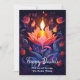 Esta tarjeta vertical Diwali baila con color y energía festiva. En el centro se quema una diya dorada, su llama irradia hacia afuera en capas petales de diseño intrincado, simbólica de calidez, pureza y el triunfo de la luz. Está rodeada de un exuberante tapiz de flores abstractas y acentos paisajistas en vivos tonos rojos, naranjas, morados y azules, creando un rico caleidoscopio de celebración. El fondo oscuro ofrece un sorprendente contraste, lo que permite que los elementos vibrantes brillen con elegancia. "Feliz Diwali" aparece cerca de la cima, seguido del mensaje de amor: "Con amor y bendiciones, la familia Pathak". Es un reflejo sincero de la tradición, la alegría y el calor familiar. La tarjeta es personalizable tanto en la parte delantera como en la trasera, y está disponible en formatos impresos como digitales, listos para transportar la luz a través de kilómetros o momentos.