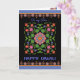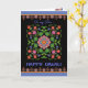 Tarjeta de felicitación Diwali para un hijo, con un patrón Ranggoli de colores vivos y un borde de flores Naranjas, rosas y azules y un motivo Rangoli, de un collage de papel pintado a mano de Judy Adamson. Parte de la colección Posh & Painterly 'Rangoli'.