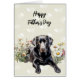 Feliz Día del Padre de parte del perro. Diseño de labrador negro entre flores silvestres con patrón de corazones en el fondo. Crea un mensaje personalizado dentro. Utiliza texto de muestra similar que es para papá de parte del perro, o cámbialo para que sea de parte de los niños o la familia.