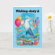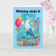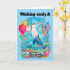 Tarjeta Dolphin Vestido gorra de cumpleaños sosteniendo el