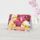 Domingo de madre, Día de la Madre, tarjeta de saludo de papel escrita en galés. Gyda Chariad ar Sul y Mamau, con amor el domingo de maternidad. Imagen de Plumeria tropical, flores de Frangipani en colores brillantes. Arte, imagen y verso copyright © Shoaff Ballanger Studios, 2025.