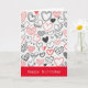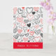 Tarjeta Doodle de cumpleaños corazones hipster rojo y negr