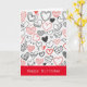 ¡Perfecto para una tarjeta de cumpleaños artística! Un diseño moderno y de moda de corazones de arte de pluma doodle con tinta roja y negra en un fondo gris muy claro. Este diseño de patrones de corazón de hipster artístico de cumpleaños seguro que capturará tu corazón. Perfecto para mostrar tu amor o para cualquier celebración de cumpleaños. El texto es personalizable para incluir cualquier saludo que necesite, por ejemplo: Felicitaciones o "Te amo"