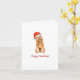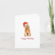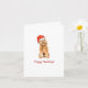 Tarjeta de felicitaciones de fiesta plegada ilustrada con acuarela de adorable doodle dorado con sombrero de Santa.