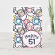 Coloridos círculos garabateados de doodle en blanco por 51 años. El texto se puede cambiar para cualquier cumpleaños de edad.