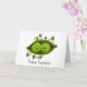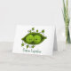 Ilustracion lindo de dos guisantes en una vaina. Cada guisante verde se sienta cómodamente dentro de un vaivén verde. Cada uno tiene una cara sonriente dulce. Alrededor de la vina hay viñas con hojas verdes. Debajo del ilustracion están las palabras "Mejor Juntos" en un texto verde. Dentro de la tarjeta hay una plantilla para añadir tu propio mensaje y en la parte trasera hay el mismo ilustracion que en la parte delantera.