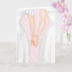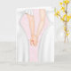 Una tarjeta de felicitaciones para una boda lésbica. El diseño presenta dos novias con vestidos de novia sobre un fondo suave rosa. (Creado con arte original©delightful-doodles.com)