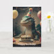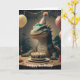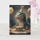 Tarjeta Dragón de Komodo sentado en una mesa con pastel de
