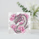 Tarjeta Dragón oriental con flores rosadas vibrantes
