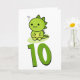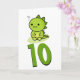 Tarjeta de felicitaciones de cumpleaños para niños con un dragón verde bebé chibi. Número de edad editable