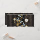 Tarjeta Dragoniscos de Steampunk sobre fondo rayado marrón