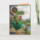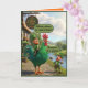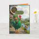 El divertido diseño de la tarjeta del Día de San Patricio cobra vida con pura travesura irlandesa en negrita estilo 3D de Pixar. Un duende encantado monta orgullosamente un gallo verde masivo fuera del "Craic Inn", mientras que otro duende está cerca con una caña de pescar, absolutamente atónito por el tamaño y el color del magnífico gallo. Es juguetón, colorido y está lleno del tipo de humor irlandés que hace que el Día de San Patricio sea inolvidable.