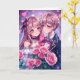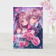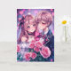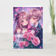Dibujo de pareja de anime rodeada de rosas rosadas y corazones. Tarjeta de Día de San Valentín personalizada para la pareja que ama el anime.