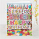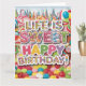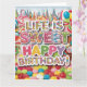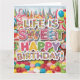 Disfrute de una celebración de cumpleaños llena de dulces con este vibrante diseño de cumpleaños con temática de Candyland. Repleta de dulces coloridos, copas, gotas y dulces, este diseño caprichoso da vida a la magia de Candyland. Con colores llamativos como rosa caliente, verde limón y morado con el lúdico texto 'La vida es dulce - ¡Feliz cumpleaños!', esta tarjeta es perfecta para todo aquel que ame los dulces y las vibraciones alegres. Añade un toque de brillo para hacer su día especial extra dulce.
