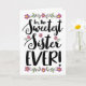 Este diseño único, bonito y femenino de letra a mano presenta el título, "¡Para la Hermana más Dulce de TODOS los tiempos!" El diseño incluye ilustraciones de flores y vegetación. En el interior tiene este mensaje (personalizable): ¡Eres verdaderamente la hermana más maravillosa en todos los sentidos!