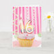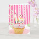 Decoraciones rosadas con la magdalena helada y las velas encendidas del número 16, celebrando un cumpleaños dulce dieciséis