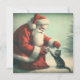 Aquí hay una tarjeta linda con una ilustración vintage de Santa Claus dando un regalo a un gatito en la nieve. Es una tarjeta dulce para enviar como tarjeta de Navidad o para dar con un regalo. Esta tarjeta será especialmente agradable para un amante de los gatos o alguien que le gusten el arte y los diseños retro.