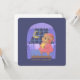 Un lindo ilustracion de un oso de peluche en PJs sosteniendo una estrella mientras miraba la luna afuera de la ventana