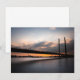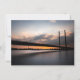 Foto de viaje del puente "Rheinkinebrücke" en Düsseldorf, Alemania, fotografiado en la noche inmediatamente después de la puesta del sol.