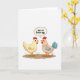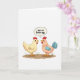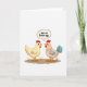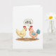This card shows two rounded cartoon birds facing each other on a small patch of brown ground dotted with tiny green grass blades, set against a plain white background. The bird on the left is a soft cream color and tilts its head toward the other with a gentle, affectionate look 🐇. On the right stands a peach-toned bird with teal-blue wing and tail feathers, plus a bright red comb and wattle, leaning in as if sharing a secret between friends. Light pink blush marks on both cheeks add to the tender, teasing mood of their exchange. Above the right bird, a speech bubble carries the line “I was an Easter egg.” in dark lettering that’s easy to read. The open white space around them keeps all attention on their close stance and the funny confession 🌷. The teal-blue feathers contrast with the peach body, and the speech bubble sits just above the right bird’s head with a neat tail pointing to its beak.