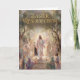 Celebrate the gentle triumph of Easter with this serene card featuring a pastel painting of Jesus standing just outside the open tomb, arms raised in quiet victory as soft glory glows behind Him. Awestruck people gather near, their faces bathed in hues of dawn pink, lavender, and pale gold, capturing the tender miracle of resurrection hope. Inside, graceful poetry traces the mystery of life rising from silence, calling every heart to lift up in joy and wonder at the Lamb who makes all things new.