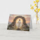 An awesome serene and inspiring AI generated image of the risen Jesus stepping forward from a circular stone tomb at dawn showing that the stone entrance was moved. Warm golden light radiates behind Him, forming a glowing halo effect through the archway. His hands are open in a gesture of peace and welcome, while white doves soar in the soft pastel sky. Colorful spring flowers bloom at His feet, and gentle rays of sunlight symbolize resurrection, hope, and new beginnings—perfect for a personalized Easter greeting card.
